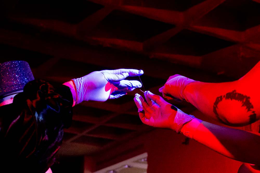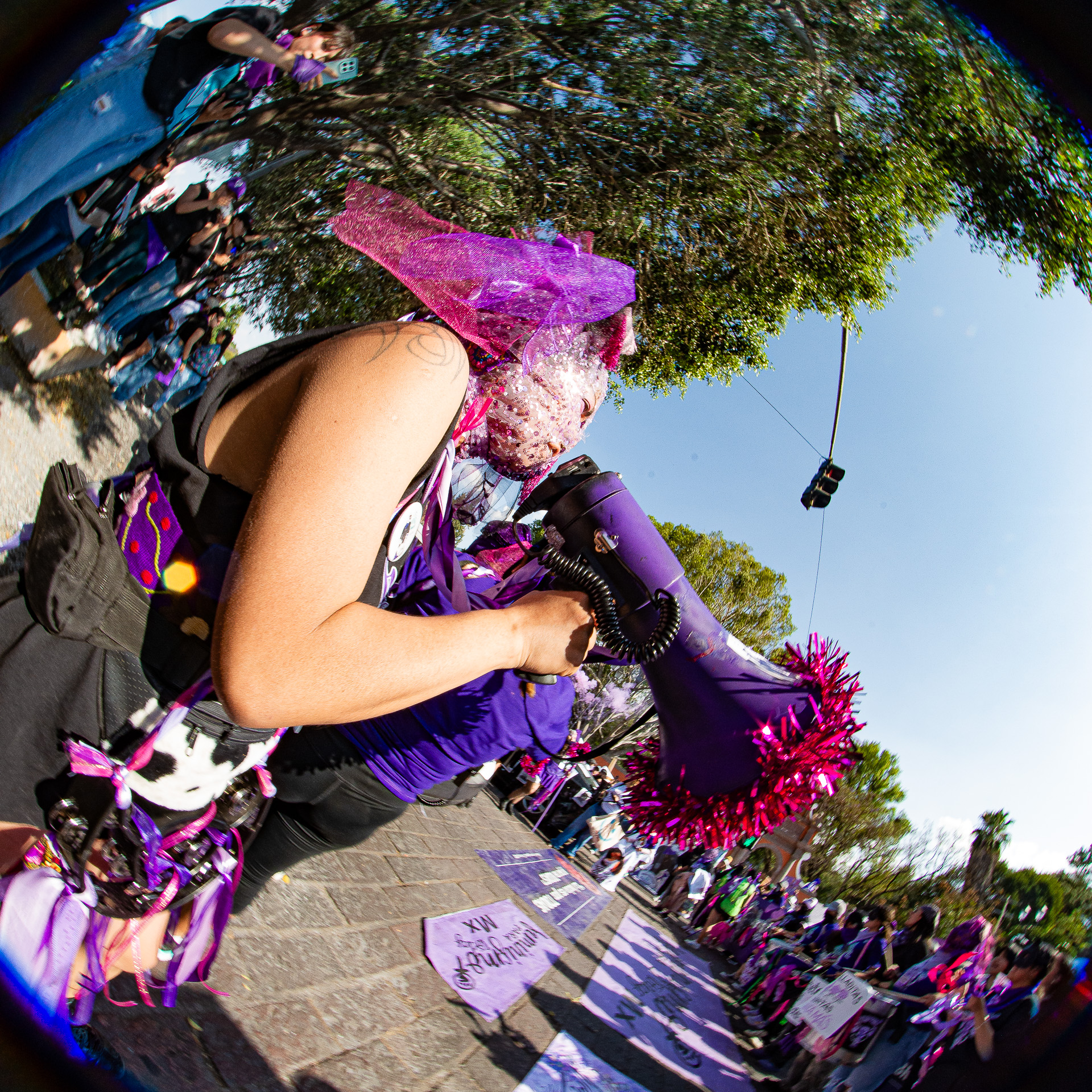 She actively collaborates with human rights focused organizations and her language is visual impact.